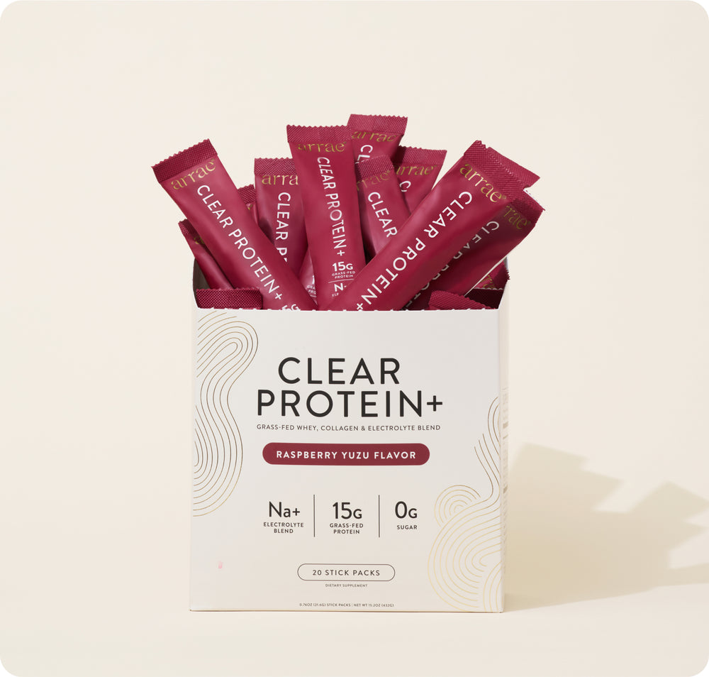 “Clear protein” refers to a type of protein powder that dissolves into a light, juice-like drink instead of a thick, milky shake. Our clear protein is made from a blend of whey and collagen, has a refreshing raspberry yuzu flavor, and is easy to digest—making it perfect for people who want the benefits of protein without the heaviness of traditional protein powders.