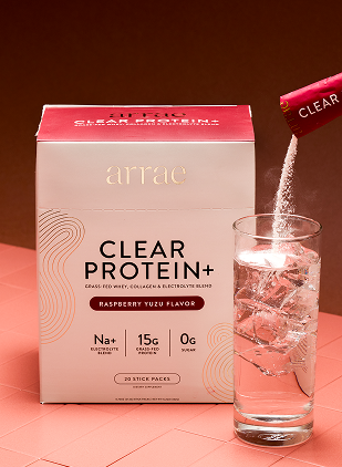“Clear protein” refers to a type of protein powder that dissolves into a light, juice-like drink instead of a thick, milky shake. Our clear protein is made from a blend of whey and collagen, has a refreshing raspberry yuzu flavor, and is easy to digest—making it perfect for people who want the benefits of protein without the heaviness of traditional protein powders.