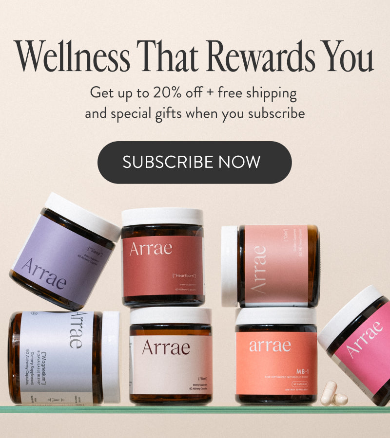 Subscribing comes with amazing perks! Enjoy up to 20% off recurring subscriptions, free shipping across the US and Canada on every order, and earn Arrae Cash that grows the longer you stay subscribed (5%, 10%, 15% back). Plus, get access to exclusive gifts and rewards the more you shop and stay with us!