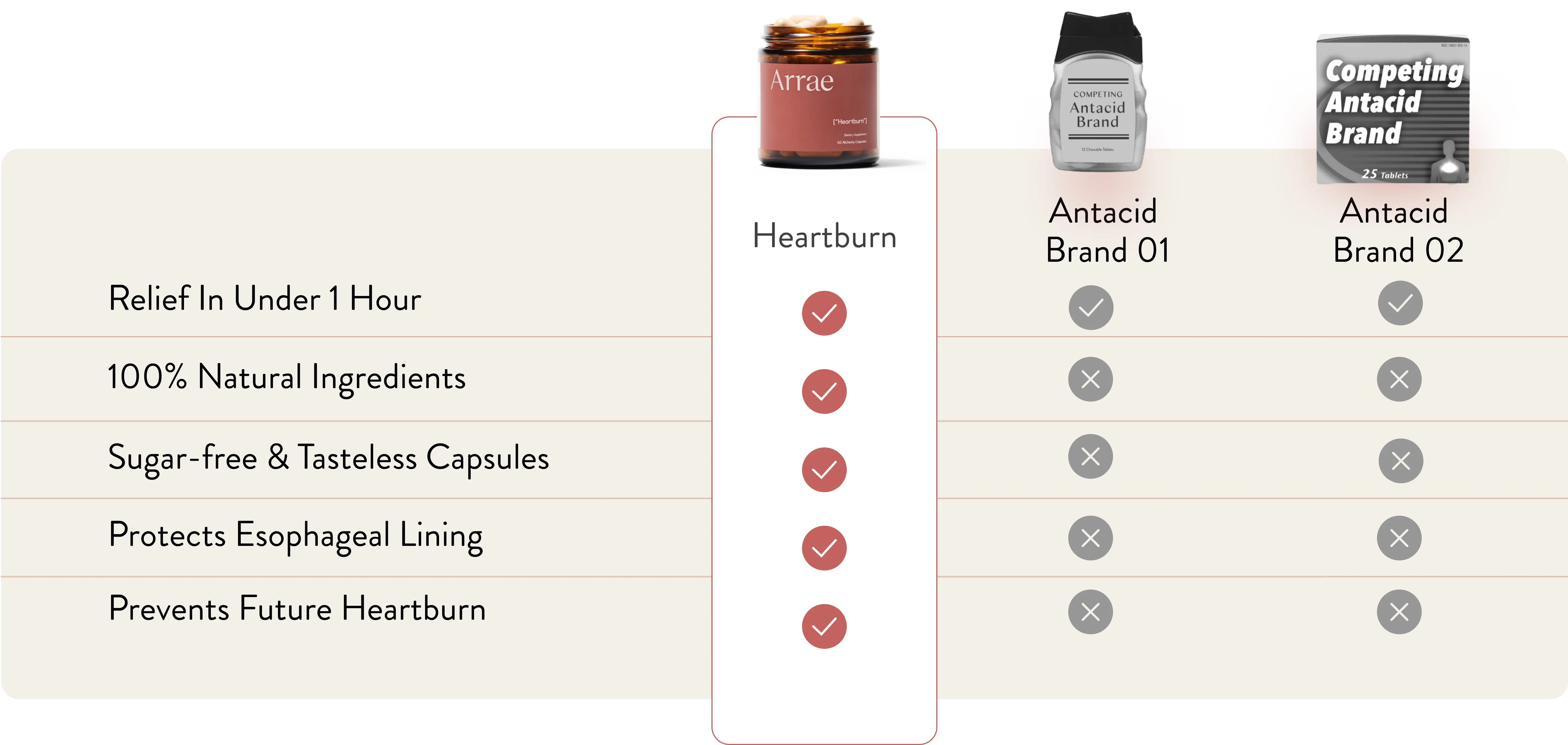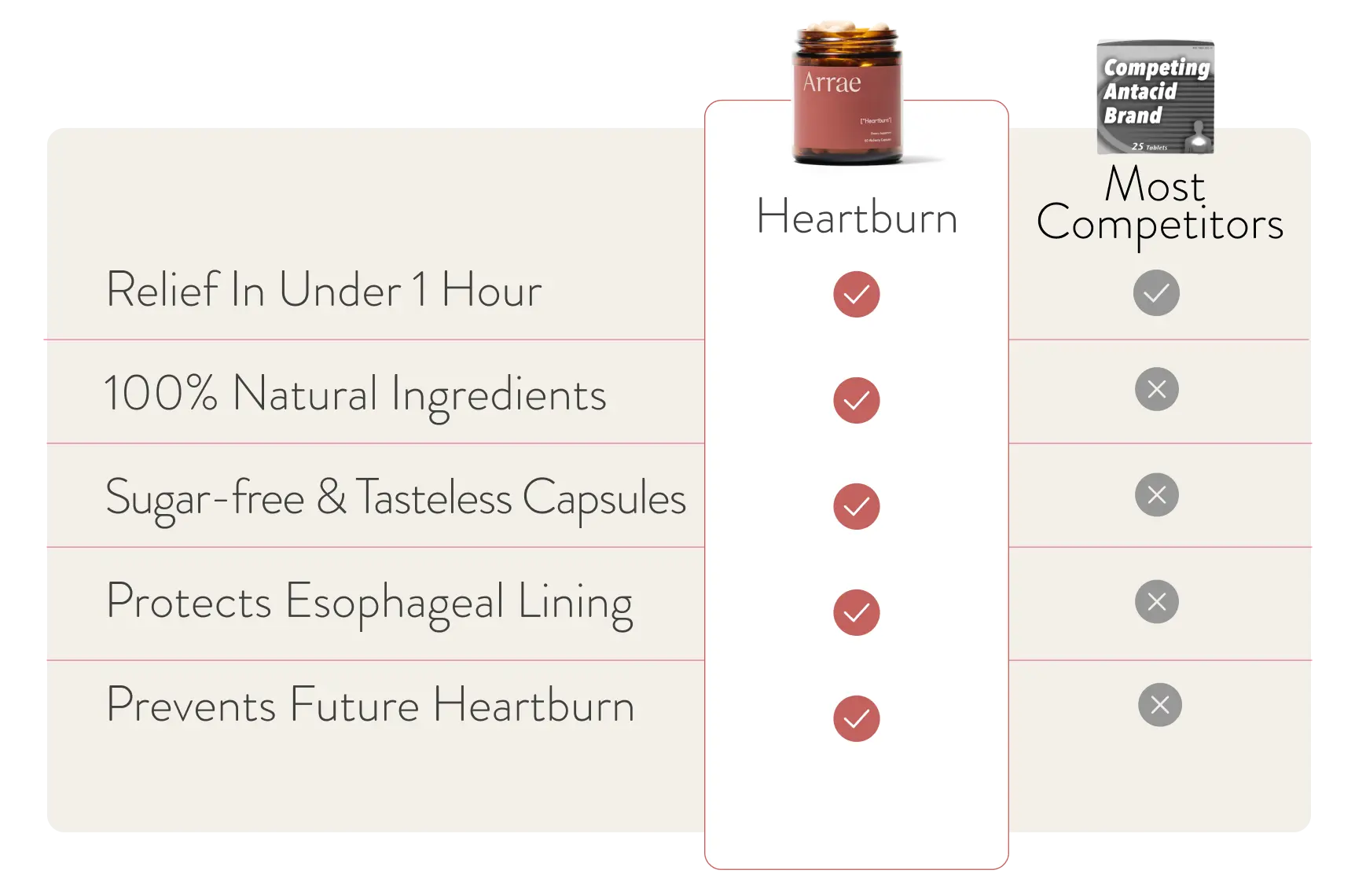 That's where Arrae steps in! Gives you natural relief within 1 hour and even prevents heartburn from happening